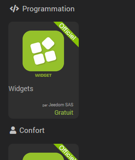 Hello, je viens d’installer le plugin Widget, je l’ai activé, mais il est vide j’ai vu dans un tuto qu’on vois apparaitre les widgets par défaut de Jeedom. Idem pour le Market de widget … vide.