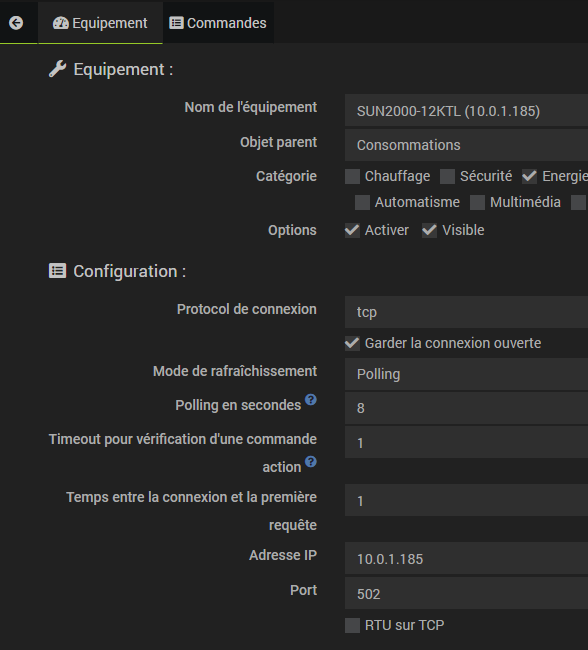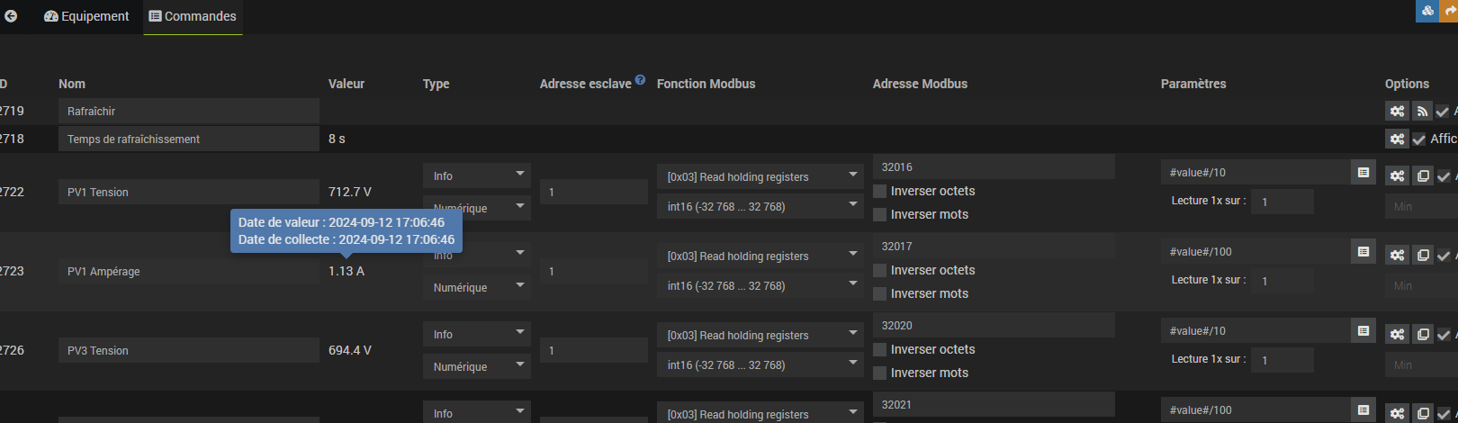 Un des équipements (l’autre équipement à un polling a 60 mais génère aussi l’erreur)