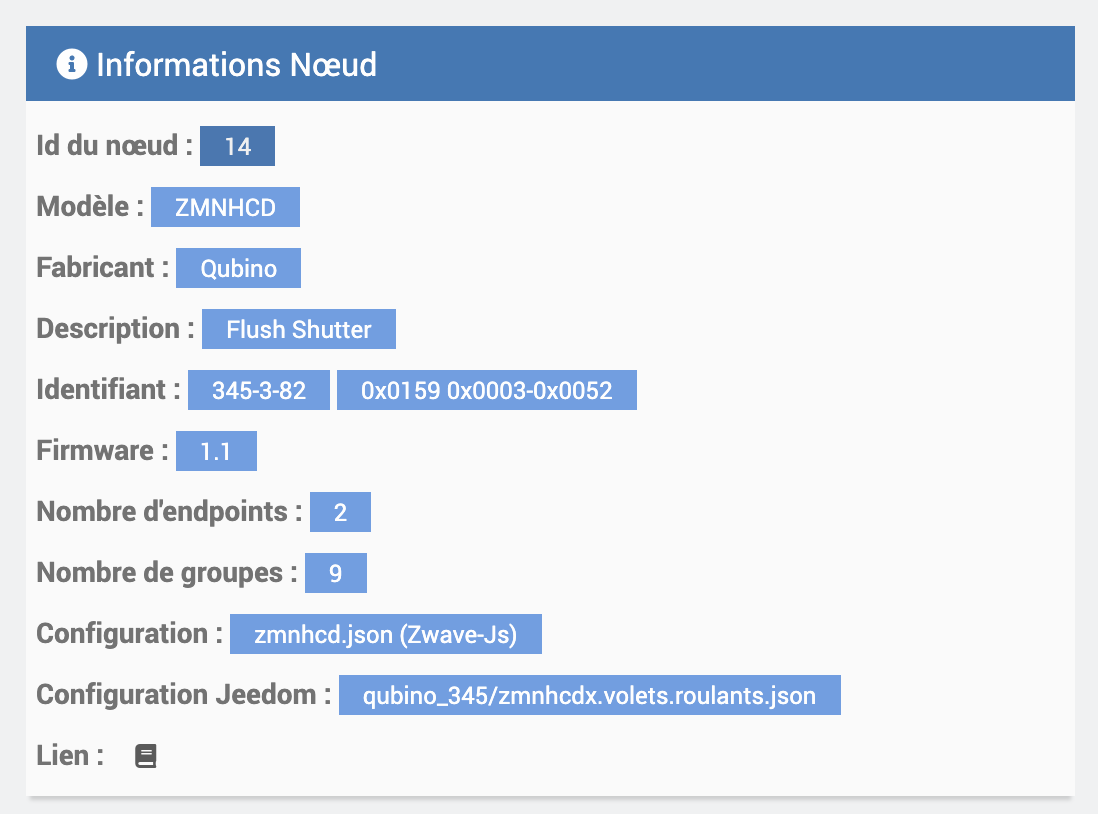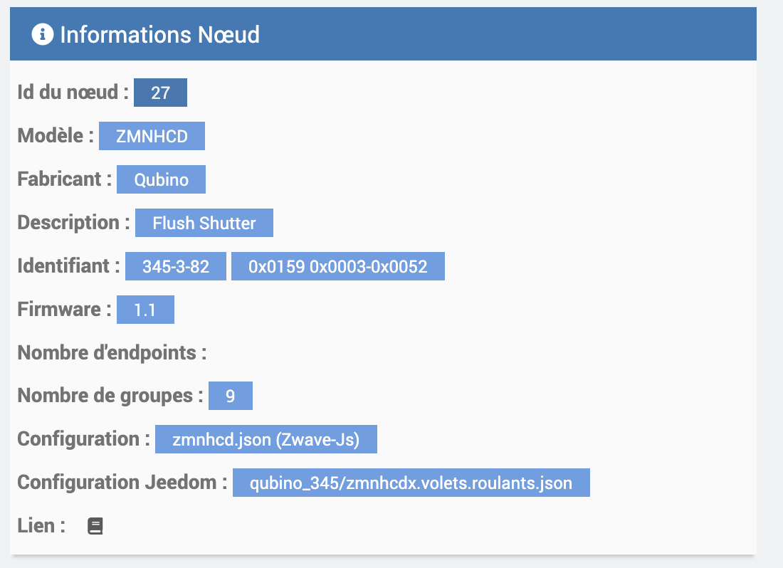 J’ai exclus puis ré inclus un device car pb de positionnement. Il est en parfait santé, enfin presque: