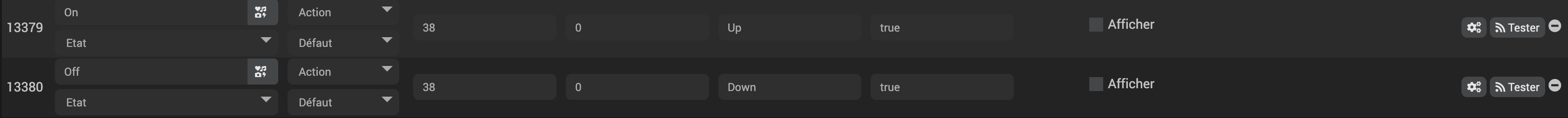 J’ai d’abord tout supprimé puis rechargé les commandes et enfin j’ai créé à la main les commandes Etat ON OFF et intensité.