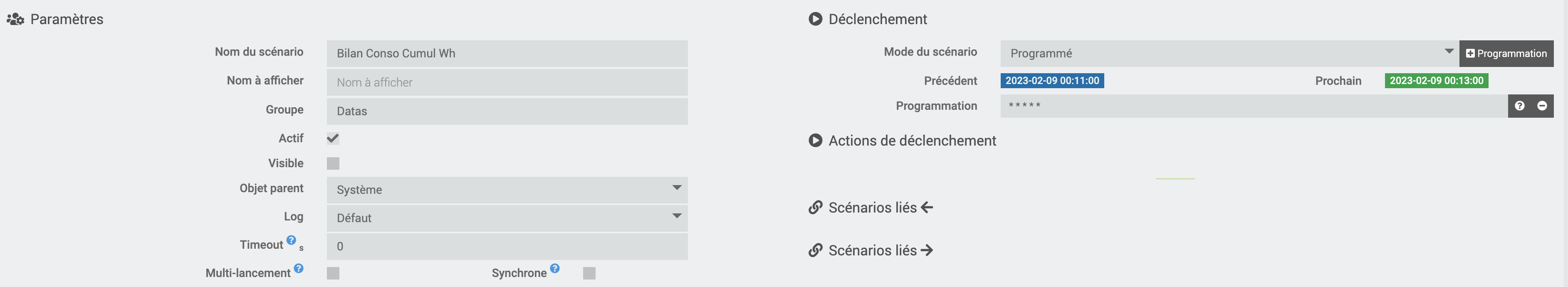 4- Cette variable est alimenté grâce à une scénario qui incrémente la valeur de la variable pour créer l’index spécifique à chaque appareil suivi par le plugin. Ce scénario se déclenche lui aussi toutes les minutes.