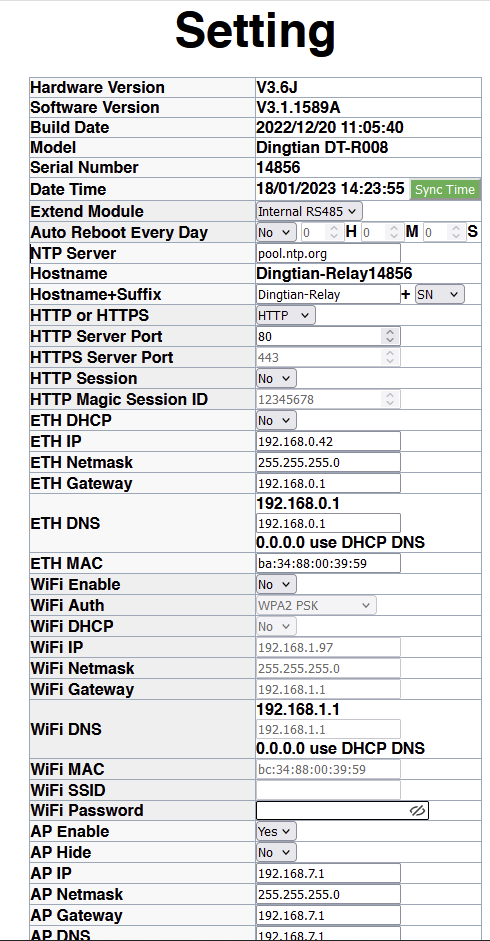 Bonjour, j’aurais besoin d’un petit coups de pouce pour configurer ma carte relais aliexpress via le plugins « Carte Ethernet 8 Relais ».