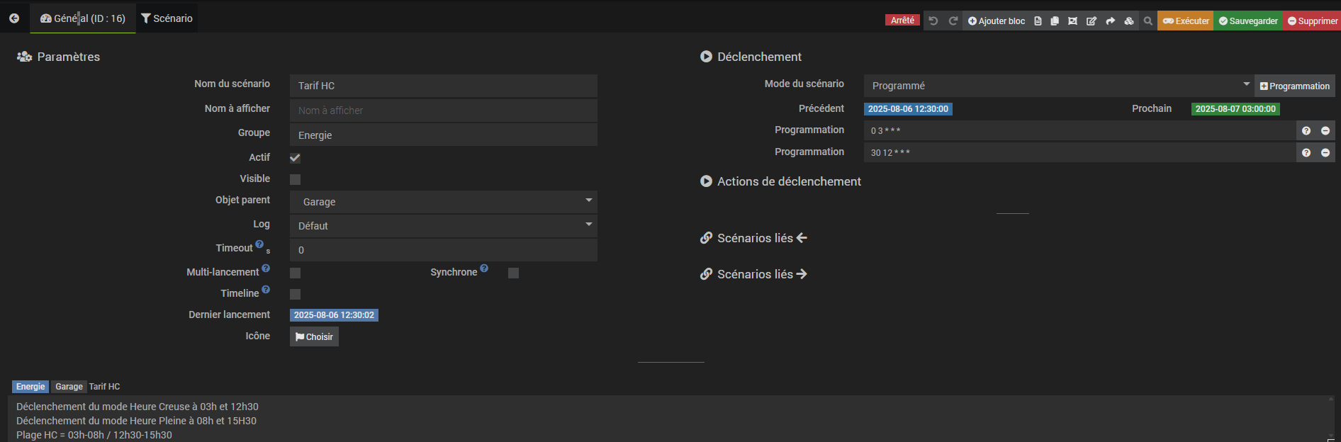 et c’est tout, ton scenario planifiera à 1h du matin tous les changements HPHC de la journée, et ca, tous les jours, et tu renseignes juste cette commande #[ta][commande][tarifHPHC]# dans plugin-jeemeter