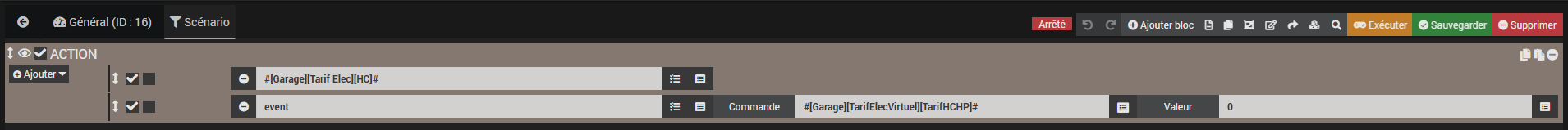 Du coup je regarde pour passer par un virtuel avec #time# puis un scénario avec la condition si Virtuel est supérieur à 725 ou inférieur à 2325 alors tu affiches 1 ( sinon tu affiches 0 ) pour que le plugin comprenne que c’est heure pleine ou creuse.