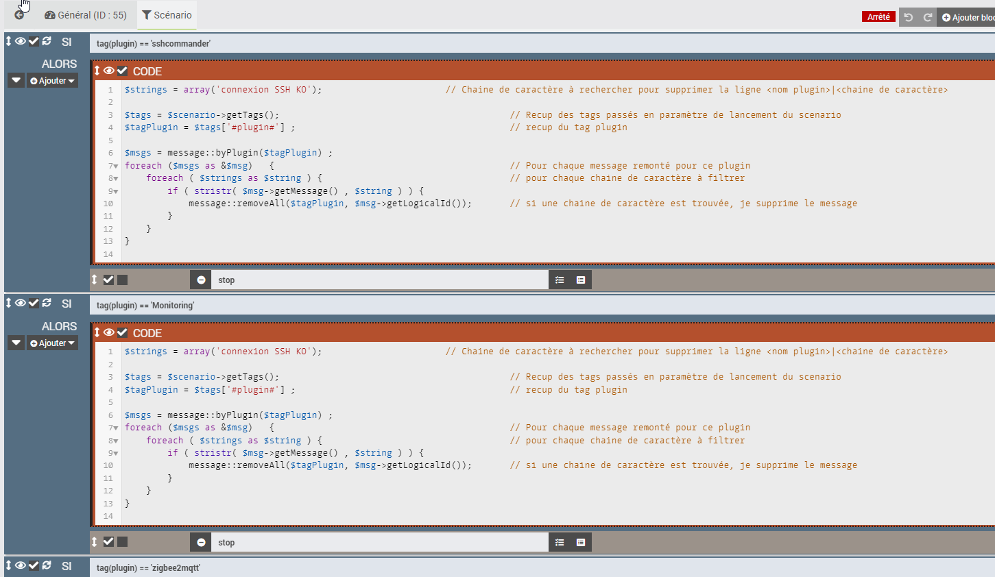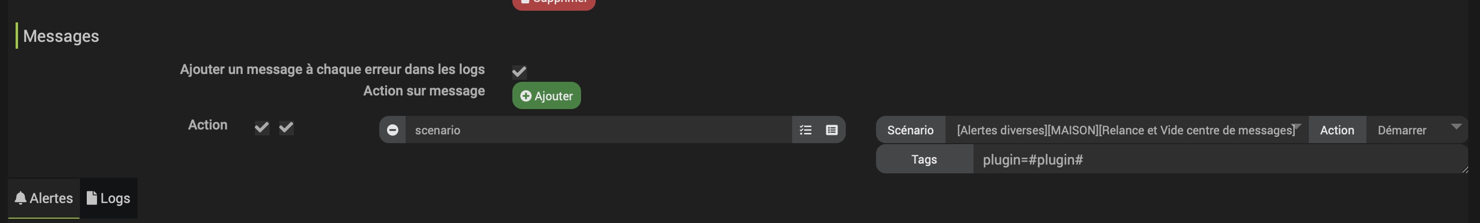 lancement d’un scenario avec en tag le nom du plugin et en fonction du tag, filtrage de messages suivant une chaine de caractère dans ce dernier