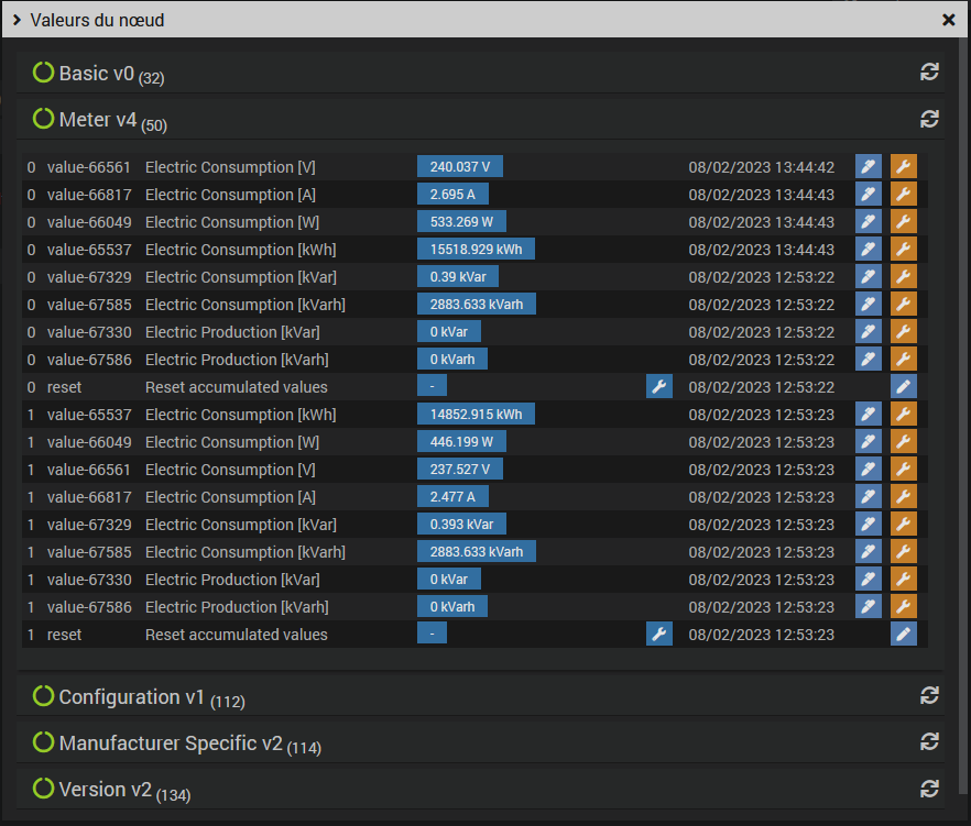 Dans les commandes créées par zwavejs, j’ai maintenant 4 mesures de puissance, de conso, de tension et de courant: Puissance, Puissance-1, Puissance-2, Puissance-3 (idem pour les trois autres mesures).