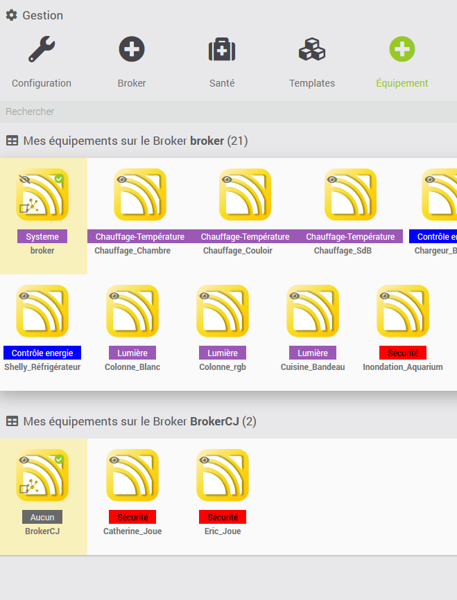 Le plugin Jeedom link d’origine permettant d’avoir une « copie » des équipements de ma résidence secondaire sur le Jeedom de ma résidence principale (conf plus costaud) et permettre ainsi d’avoir l’état des équipements de la résidence secondaire, stocker leur historique , piloter mes objets de la résidence secondaire depuis le Jeedom de ma résidence principale (y compris des scénarios) tout en ayant la résidence secondaire autonome pour les actions sensibles (gestion heures creuses/heures pleines, gestion chauffe eau, gestion chauffage,…)