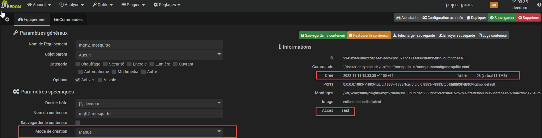 Et si un jour vous avez vraiment besoin de docker pour d’autres containers, il faudra probablement mieux l’installer sur un système dédié (syno permet cela aussi en directe) plutôt que sur la « machine jeedom »