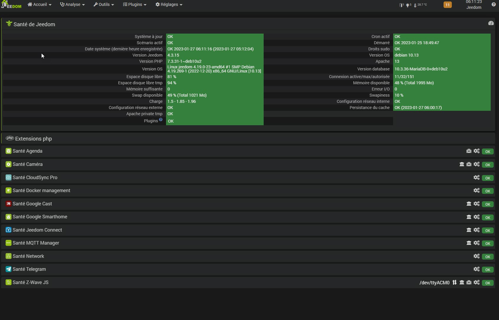 je reinstall le plugin ZWAVEJS depuis le market (en stable) et quitte à faire j’ai fait idem pour DockerManagement et MQTT Manager, + bien sur les dépendances.