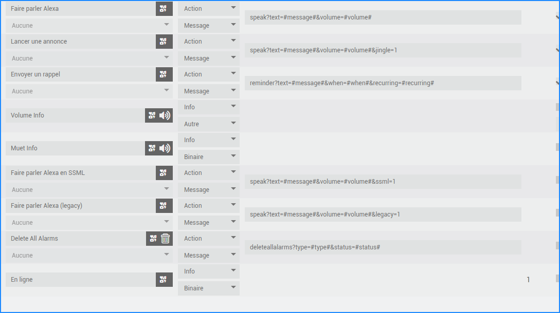 Sur la V1, une commande existait pour la création d’une alarme sur le device. Lorsqu’utilisé, l’alarme était créée à l’aide de quelques paramètres(de mémoire l’heure (!) et la sonnerie à utiliser), sans bruit de la part du device. Je ne retrouve pas d’équivalent de cette commande dans la V2. et là je pense que je rejoint le topic Gestion des alarmes. Donc pour contourner le problème j’ai utilisé la « commande texte », parce que je ne peux/veux pas créer autant d’alarme à activer ( toutes les 5 minutes de 6h15 à 10h ?