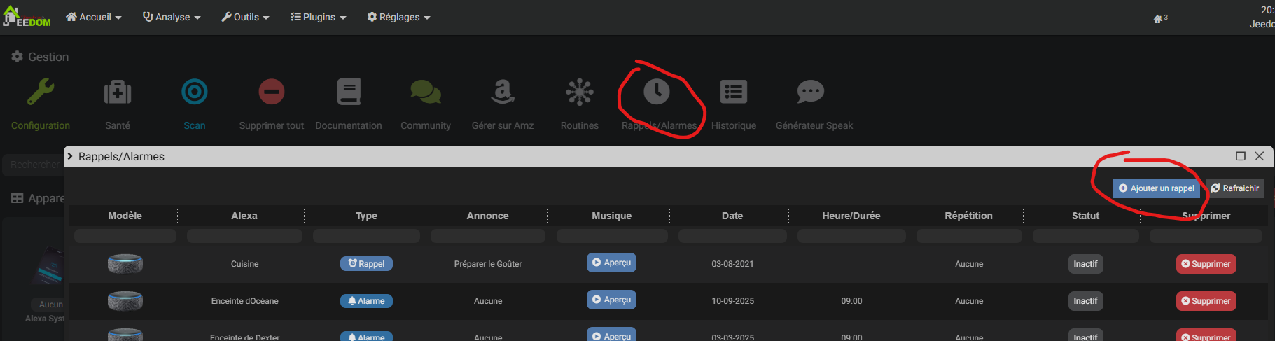 - L’heure de rappel de mon echo show est dans un virtuel de surveillance (voir fichier d’aide du plugin), le changement de l’horaire de programmation d’un rappel lance un scénario
