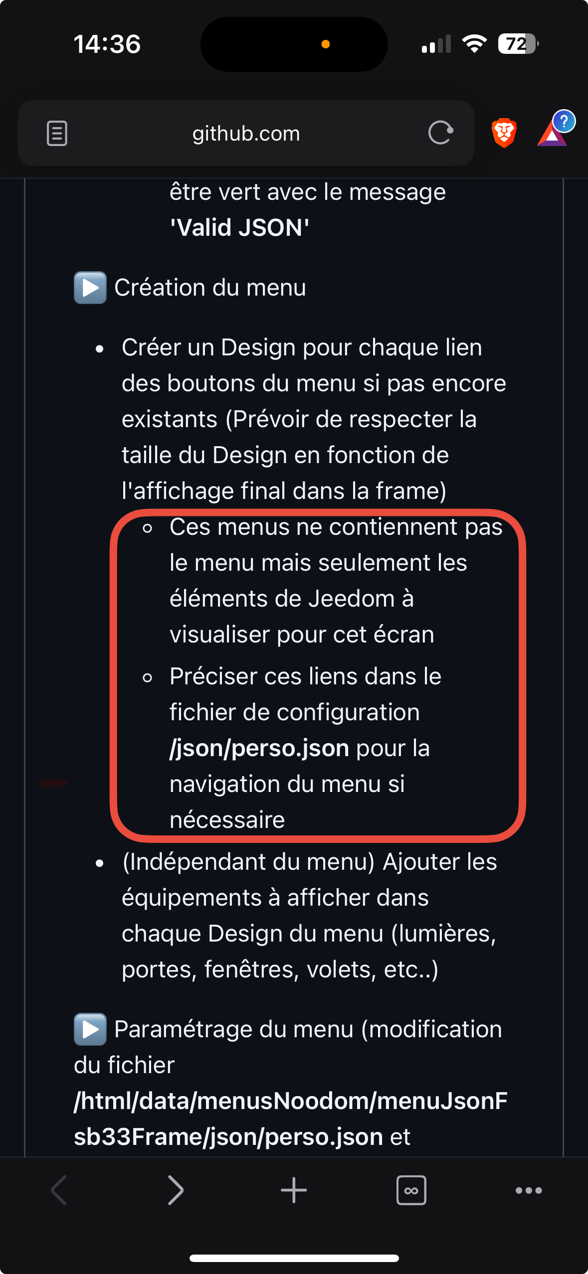 Ce qui n’est pas précisé dans la doc et c’est la que je n’arrivais pas a comprendre c’est que une fois que tu créé tes designs ( différentes pages de tes menus) tu lance le scénario et le menu s’intègre automatique dans tous tes designs tout seul. il ne reste qu’a modifier le json pour l’id des pages.