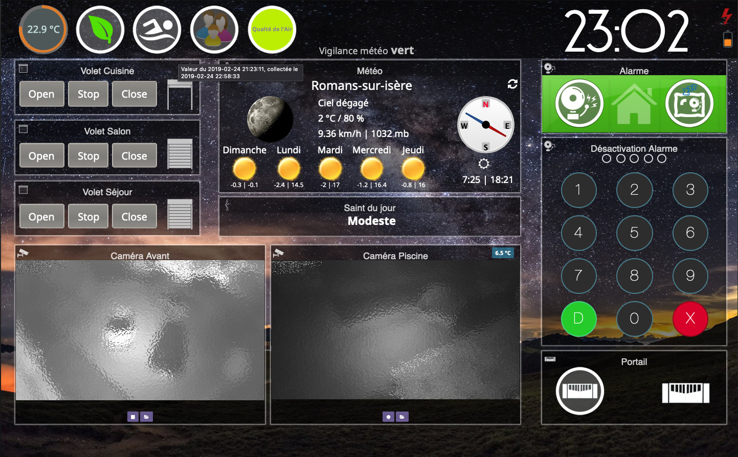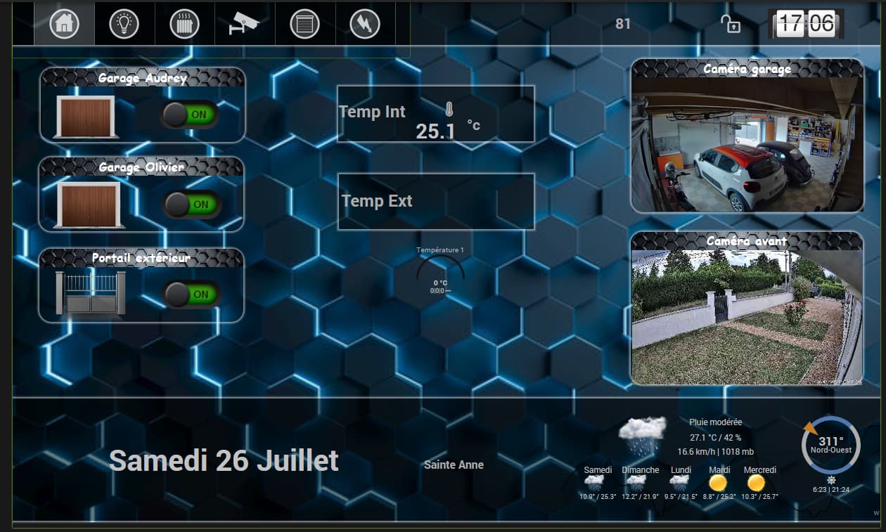 1 étape je créer 4 designs de pages ( accueil, lumière, chauffage, caméra)