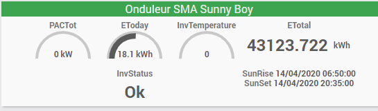 Quel onduleur utilisez-vous? Car je dois changer les miens et j’aimerais une marque qui me permette de remonter les informations dans Jeedom (et si possible sans passer par le Cloud). Et, si je comprend bien, c’est sur l’onduleur que vous avez configurer une adresse http vers une info virtuelle d’un virtuel ? Bonne journée.
