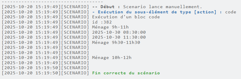 $scenario->setLog("id :".$id); // On affiche dans les logs du scénario l'ID du calendrier