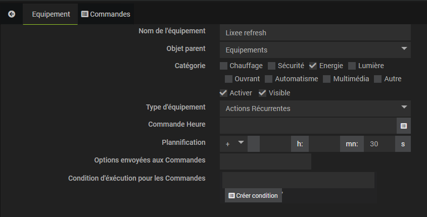 J’ai fait l’acquisition du plugin Time Manager afin de rafraîchir de manière plus fréquente les informations de consommation instantanée de mon Lixee.