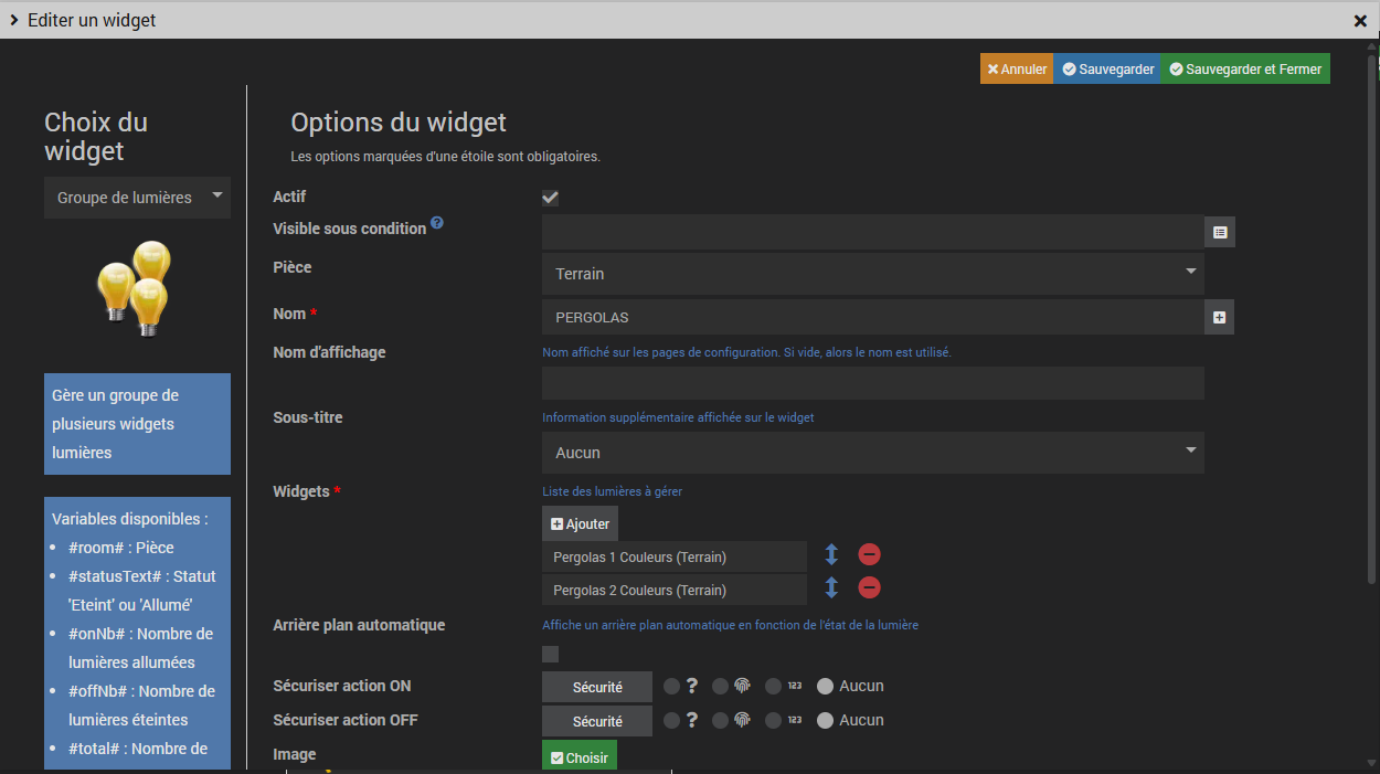 J’utilise un groupe de lumières pour commander des LED RGBW.
