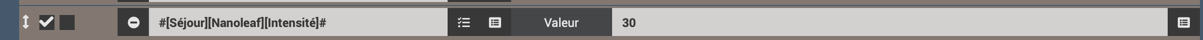 Je n’arrive pas à régler l’intensité de mes nanoleaf depuis un scénario… depuis le plugin avec le slider aucun soucis, par contre depuis un scénario, en sélectionnant intensité et en entrant une valeur comprise entre 0 et 100, rien ne ce passe, aucune variation lumineuse…