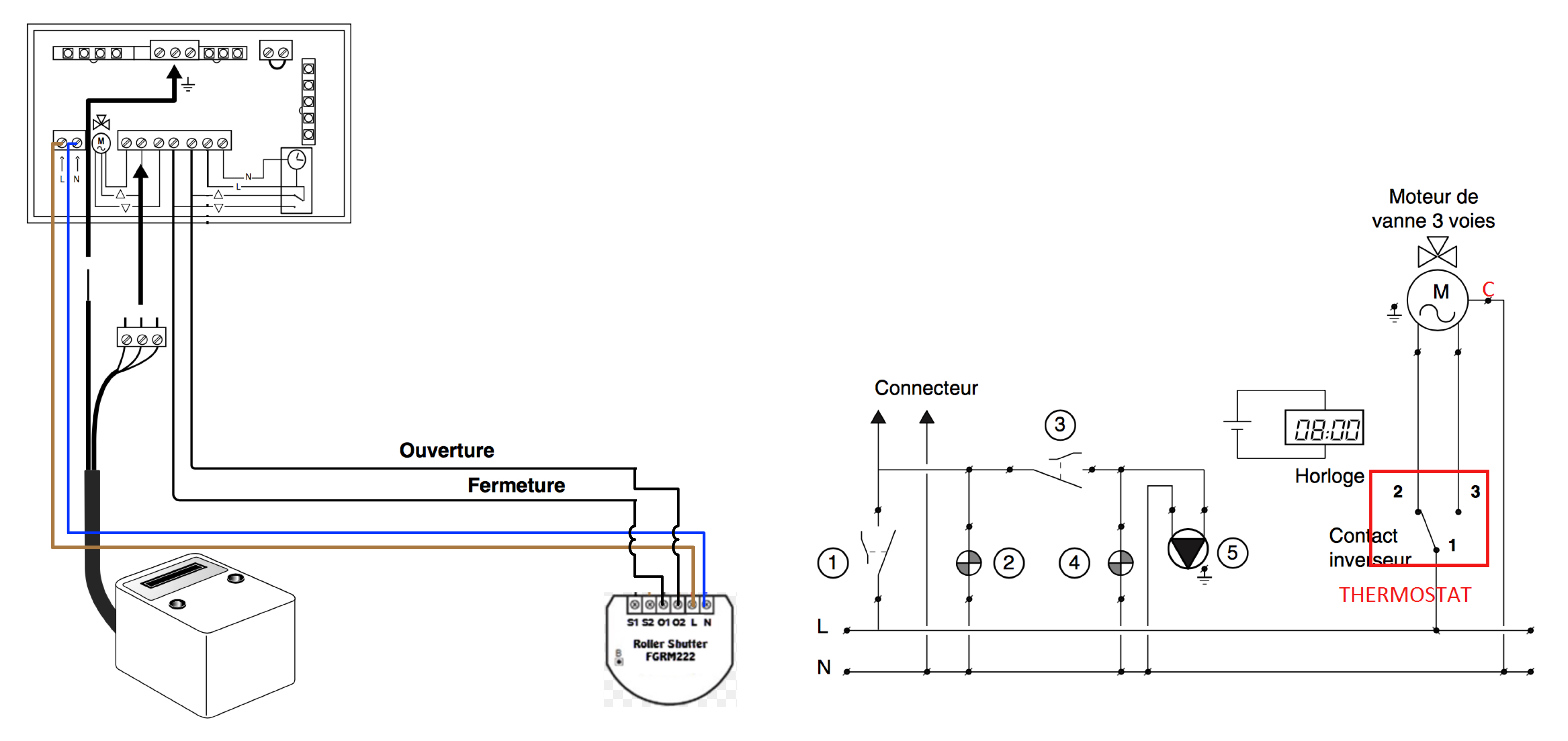 En effet, notre vanne trois avait un fil pour l’ouverture et un autre pour la fermeture. Un fallait donc deux contacts NO alors que le netatmo n’en propose qu’un.