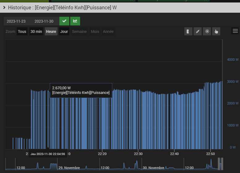 Bonjour, cela fait 2 ou 3 jours que j’ai installé le plugin suivi conso. paramété avec les info remonté por mon télé info sur le linky.