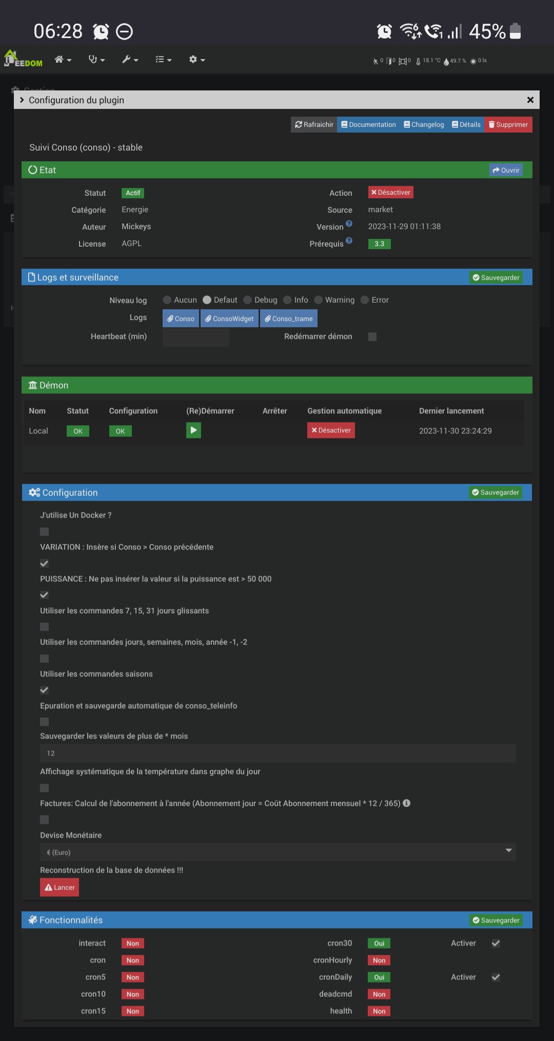 je vais sessayé de relancer mon jeedom et après de faire marcher suivi conso.