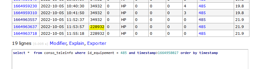 La correction sur la Table conso_teleinfo me parait un peu compliquée, car il y a bcp de valeur qui arrivent en permanence.