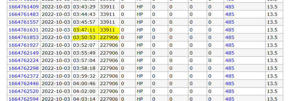 Ce changement brusque de 33911 a 227906 a 3h50 est inexplicable (prise éteinte), l’index ayant recommencé a s’incrémenter a partir de 7:52, heure du levé. L’équipement ‹ SuiviConso bloc TV ›