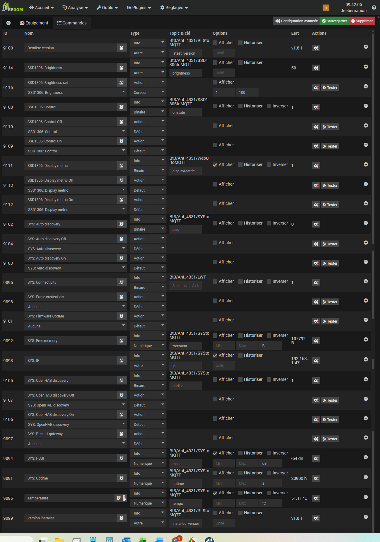 {"sensor":{"F024F9AF2F68-uptime":{"stat_t":"Bt3/Ant_4331/SYStoMQTT","avty_t":"Bt3/Ant_4331/LWT","dev_cla":"duration","unit_of_meas":"s","name":"SYS: Uptime","uniq_id":"F024F9AF2F68-uptime","val_tpl":"{{ value_json.uptime }}","pl_avail":"online","pl_not_avail":"offline","stat_cla":"measurement","device":{"ids":["F024F9AF2F68"],"name":"Ant_4331","mdl":"[\"LilyGo_SSD1306\",\"WebUI\",\"rtl_433\"]","mf":"OMG_community","cu":"http://192.168.1.47/","sw":"v1.8.1"}},"F024F9AF2F68-freemem":{"stat_t":"Bt3/Ant_4331/SYStoMQTT","avty_t":"Bt3/Ant_4331/LWT","dev_cla":"data_size","unit_of_meas":"B","name":"SYS: Free memory","uniq_id":"F024F9AF2F68-freemem","val_tpl":"{{ value_json.freemem }}","pl_avail":"online","pl_not_avail":"offline","stat_cla":"measurement","device":{"ids":["F024F9AF2F68"],"name":"Ant_4331","mdl":"[\"LilyGo_SSD1306\",\"WebUI\",\"rtl_433\"]","mf":"OMG_community","cu":"http://192.168.1.47/","sw":"v1.8.1"}},"F024F9AF2F68-ip":{"stat_t":"Bt3/Ant_4331/SYStoMQTT","avty_t":"Bt3/Ant_4331/LWT","name":"SYS: IP","uniq_id":"F024F9AF2F68-ip","val_tpl":"{{ value_json.ip }}","pl_avail":"online","pl_not_avail":"offline","device":{"ids":["F024F9AF2F68"],"name":"Ant_4331","mdl":"[\"LilyGo_SSD1306\",\"WebUI\",\"rtl_433\"]","mf":"OMG_community","cu":"http://192.168.1.47/","sw":"v1.8.1"}},"F024F9AF2F68-rssi":{"stat_t":"Bt3/Ant_4331/SYStoMQTT","avty_t":"Bt3/Ant_4331/LWT","dev_cla":"signal_strength","unit_of_meas":"dB","name":"SYS: RSSI","uniq_id":"F024F9AF2F68-rssi","val_tpl":"{{ value_json.rssi }}","pl_avail":"online","pl_not_avail":"offline","device":{"ids":["F024F9AF2F68"],"name":"Ant_4331","mdl":"[\"LilyGo_SSD1306\",\"WebUI\",\"rtl_433\"]","mf":"OMG_community","cu":"http://192.168.1.47/","sw":"v1.8.1"}},"F024F9AF2F68-tempc":{"stat_t":"Bt3/Ant_4331/SYStoMQTT","avty_t":"Bt3/Ant_4331/LWT","dev_cla":"temperature","unit_of_meas":"°C","name":"SYS: Internal temperature","uniq_id":"F024F9AF2F68-tempc","val_tpl":"{{ value_json.tempc | round(1)}}","pl_avail":"online","pl_not_avail":"offline","stat_cla":"measurement","device":{"ids":["F024F9AF2F68"],"name":"Ant_4331","mdl":"[\"LilyGo_SSD1306\",\"WebUI\",\"rtl_433\"]","mf":"OMG_community","cu":"http://192.168.1.47/","sw":"v1.8.1"}}},"binary_sensor":{"F024F9AF2F68-connectivity":{"stat_t":"Bt3/Ant_4331/LWT","avty_t":"Bt3/Ant_4331/LWT","name":"SYS: Connectivity","uniq_id":"F024F9AF2F68-connectivity","pl_on":"online","pl_off":"offline","pl_avail":"online","pl_not_avail":"offline","device":{"ids":["F024F9AF2F68"],"name":"Ant_4331","mdl":"[\"LilyGo_SSD1306\",\"WebUI\",\"rtl_433\"]","mf":"OMG_community","cu":"http://192.168.1.47/","sw":"v1.8.1"}}},"button":{"F024F9AF2F68-restart":{"stat_t":"Bt3/Ant_4331/LWT","avty_t":"Bt3/Ant_4331/LWT","dev_cla":"restart","name":"SYS: Restart gateway","uniq_id":"F024F9AF2F68-restart","pl_prs":"{\"cmd\":\"restart\"}","pl_avail":"online","pl_not_avail":"offline","cmd_t":"Bt3/Ant_4331/commands/MQTTtoSYS/config","device":{"ids":["F024F9AF2F68"],"name":"Ant_4331","mdl":"[\"LilyGo_SSD1306\",\"WebUI\",\"rtl_433\"]","mf":"OMG_community","cu":"http://192.168.1.47/","sw":"v1.8.1"}},"F024F9AF2F68-erase":{"stat_t":"Bt3/Ant_4331/LWT","avty_t":"Bt3/Ant_4331/LWT","name":"SYS: Erase credentials","uniq_id":"F024F9AF2F68-erase","pl_prs":"{\"cmd\":\"erase\"}","pl_avail":"online","pl_not_avail":"offline","cmd_t":"Bt3/Ant_4331/commands/MQTTtoSYS/config","device":{"ids":["F024F9AF2F68"],"name":"Ant_4331","mdl":"[\"LilyGo_SSD1306\",\"WebUI\",\"rtl_433\"]","mf":"OMG_community","cu":"http://192.168.1.47/","sw":"v1.8.1"}}},"update":{"F024F9AF2F68-update":{"stat_t":"Bt3/Ant_4331/RLStoMQTT","avty_t":"Bt3/Ant_4331/LWT","name":"SYS: Firmware Update","uniq_id":"F024F9AF2F68-update","pl_inst":"{\"version\":\"latest\"}","pl_avail":"online","pl_not_avail":"offline","cmd_t":"Bt3/Ant_4331/commands/MQTTtoSYS/firmware_update","device":{"ids":["F024F9AF2F68"],"name":"Ant_4331","mdl":"[\"LilyGo_SSD1306\",\"WebUI\",\"rtl_433\"]","mf":"OMG_community","cu":"http://192.168.1.47/","sw":"v1.8.1"}}},"switch":{"F024F9AF2F68-disc":{"stat_t":"Bt3/Ant_4331/SYStoMQTT","avty_t":"Bt3/Ant_4331/LWT","name":"SYS: Auto discovery","uniq_id":"F024F9AF2F68-disc","val_tpl":"{{ value_json.disc }}","pl_on":"{\"disc\":true,\"save\":true}","pl_off":"{\"disc\":false,\"save\":true}","pl_avail":"online","pl_not_avail":"offline","stat_on":true,"stat_off":false,"cmd_t":"Bt3/Ant_4331/commands/MQTTtoSYS/config","device":{"ids":["F024F9AF2F68"],"name":"Ant_4331","mdl":"[\"LilyGo_SSD1306\",\"WebUI\",\"rtl_433\"]","mf":"OMG_community","cu":"http://192.168.1.47/","sw":"v1.8.1"}},"F024F9AF2F68-ohdisc":{"stat_t":"Bt3/Ant_4331/SYStoMQTT","avty_t":"Bt3/Ant_4331/LWT","name":"SYS: OpenHAB discovery","uniq_id":"F024F9AF2F68-ohdisc","val_tpl":"{{ value_json.ohdisc }}","pl_on":"{\"ohdisc\":true,\"save\":true}","pl_off":"{\"ohdisc\":false,\"save\":true}","pl_avail":"online","pl_not_avail":"offline","stat_on":true,"stat_off":false,"cmd_t":"Bt3/Ant_4331/commands/MQTTtoSYS/config","device":{"ids":["F024F9AF2F68"],"name":"Ant_4331","mdl":"[\"LilyGo_SSD1306\",\"WebUI\",\"rtl_433\"]","mf":"OMG_community","cu":"http://192.168.1.47/","sw":"v1.8.1"}},"F024F9AF2F68-onstate":{"stat_t":"Bt3/Ant_4331/SSD1306toMQTT","avty_t":"Bt3/Ant_4331/LWT","name":"SSD1306: Control","uniq_id":"F024F9AF2F68-onstate","val_tpl":"{{ value_json.onstate }}","pl_on":"{\"onstate\":true,\"save\":true}","pl_off":"{\"onstate\":false,\"save\":true}","pl_avail":"online","pl_not_avail":"offline","stat_on":true,"stat_off":false,"cmd_t":"Bt3/Ant_4331/commands/MQTTtoSSD1306/config","device":{"ids":["F024F9AF2F68"],"name":"Ant_4331","mdl":"[\"LilyGo_SSD1306\",\"WebUI\",\"rtl_433\"]","mf":"OMG_community","cu":"http://192.168.1.47/","sw":"v1.8.1"}},"F024F9AF2F68-displayMetric":{"stat_t":"Bt3/Ant_4331/WebUItoMQTT","avty_t":"Bt3/Ant_4331/LWT","name":"SSD1306: Display metric","uniq_id":"F024F9AF2F68-displayMetric","val_tpl":"{{ value_json.displayMetric }}","pl_on":"{\"displayMetric\":true,\"save\":true}","pl_off":"{\"displayMetric\":false,\"save\":true}","pl_avail":"onlin
