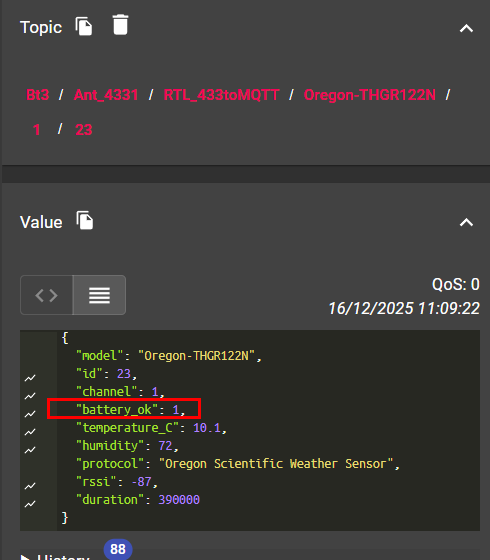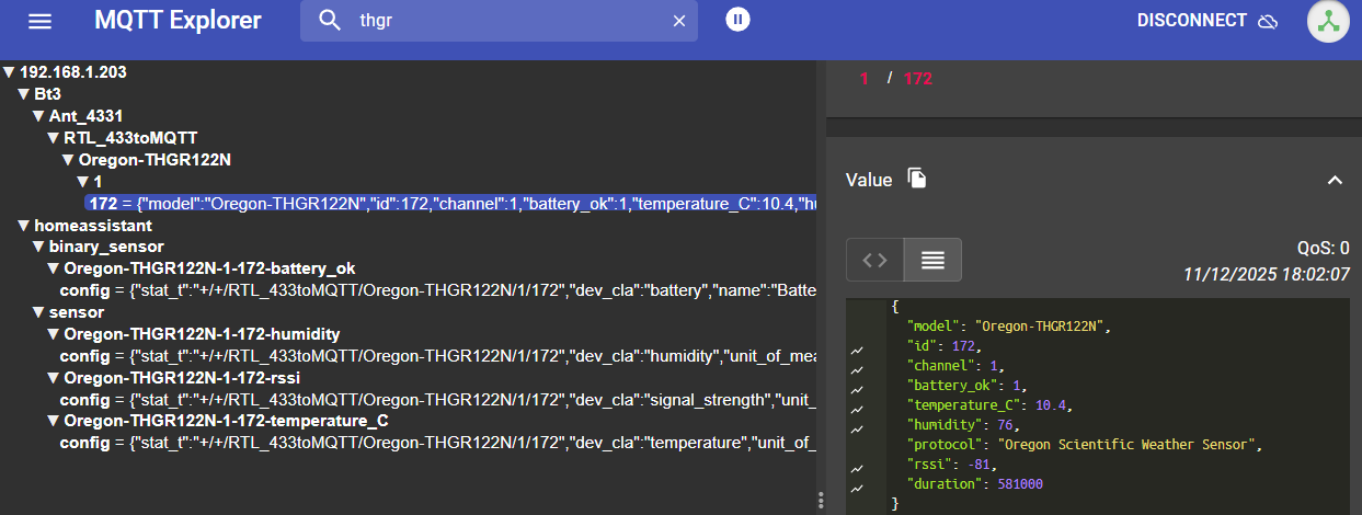 {"sensor":{"Oregon-THGR122N-1-172-humidity":{"stat_t":"+/+/RTL_433toMQTT/Oregon-THGR122N/1/172","dev_cla":"humidity","unit_of_meas":"%","name":"Humidity","uniq_id":"Oregon-THGR122N-1-172-humidity","val_tpl":"{{ value_json.humidity }}","stat_cla":"measurement","device":{"ids":["Oregon-THGR122N-1-172"],"cns":[["mac","Oregon-THGR122N-1-172"]],"mdl":"Oregon-THGR122N","name":"Oregon-THGR122N-1-172","via_device":"Ant_4331"}},"Oregon-THGR122N-1-172-rssi":{"stat_t":"+/+/RTL_433toMQTT/Oregon-THGR122N/1/172","dev_cla":"signal_strength","unit_of_meas":"dB","name":"RSSI","uniq_id":"Oregon-THGR122N-1-172-rssi","val_tpl":"{{ value_json.rssi }}","stat_cla":"measurement","device":{"ids":["Oregon-THGR122N-1-172"],"cns":[["mac","Oregon-THGR122N-1-172"]],"mdl":"Oregon-THGR122N","name":"Oregon-THGR122N-1-172","via_device":"Ant_4331"}},"Oregon-THGR122N-1-172-temperature_C":{"stat_t":"+/+/RTL_433toMQTT/Oregon-THGR122N/1/172","dev_cla":"temperature","unit_of_meas":"°C","name":"Temperature","uniq_id":"Oregon-THGR122N-1-172-temperature_C","val_tpl":"{{ value_json.temperature_C }}","stat_cla":"measurement","device":{"ids":["Oregon-THGR122N-1-172"],"cns":[["mac","Oregon-THGR122N-1-172"]],"mdl":"Oregon-THGR122N","name":"Oregon-THGR122N-1-172","via_device":"Ant_4331"}}},"binary_sensor":{"Oregon-THGR122N-1-172-battery_ok":{"stat_t":"+/+/RTL_433toMQTT/Oregon-THGR122N/1/172","dev_cla":"battery","name":"Battery","uniq_id":"Oregon-THGR122N-1-172-battery_ok","val_tpl":"{{ value_json.battery_ok }}","pl_on":"0","pl_off":"1","device":{"ids":["Oregon-THGR122N-1-172"],"cns":[["mac","Oregon-THGR122N-1-172"]],"mdl":"Oregon-THGR122N","name":"Oregon-THGR122N-1-172","via_device":"Ant_4331"}}}}