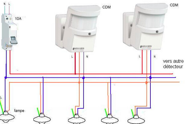 Dans 1 premier temps je voudrais alimente mes éclairage de chemin au nombre de 4 qui s’allume via 2 pir 1 a chaque bou de mon chemin de façon je rentre par le portail avec la voiture ou a pied la lumière s’allume et au bous de 10mn sa s’éteint et quand je sort de ma porte d’entre qui est a l’autre cote du chemin ma l’ample s’allume aussi pour 10 mn.