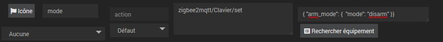 Sous JMQTT, case Topic : zigbee2mqtt/Clavier/set et case Valeur : { "arm_mode": { "mode": "disarm" }}