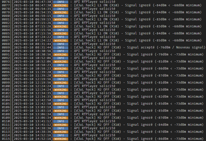 Je vais essayer d’investiguer et d’analyser ce qui se passe dans la partie python du plugin, au niveau du socket serial notamment et des commandes envoyées au rfplayer.