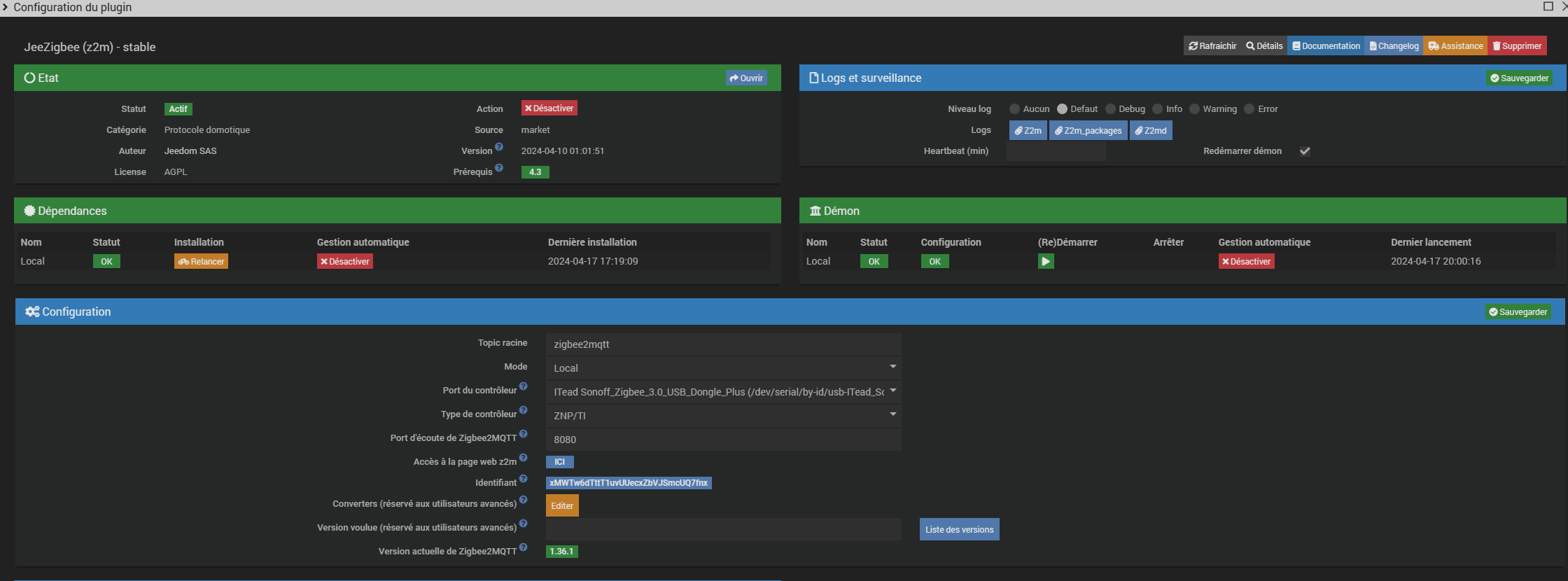 La version suivante a un peu amélioré 1.36.1 mais toujours des problèmes de temps en temps. Par exemple je ne pouvais plus commander certaines prises mais par contre j’avais le retour d’état.