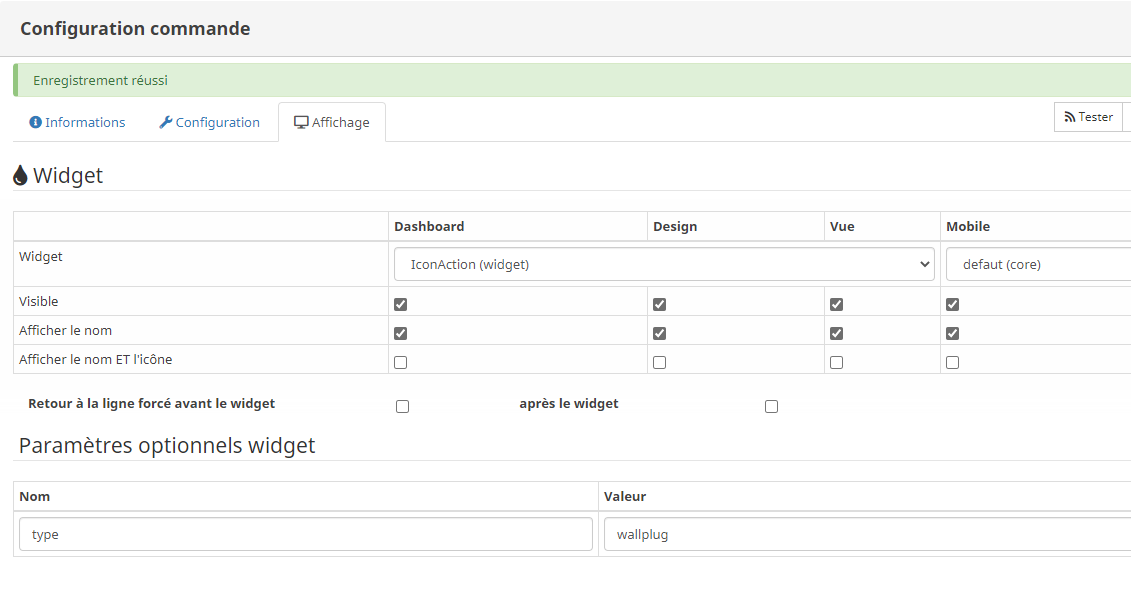 . Donc sur une prise de courant connecté via Tuya j’ai appliqué le widget iconaction