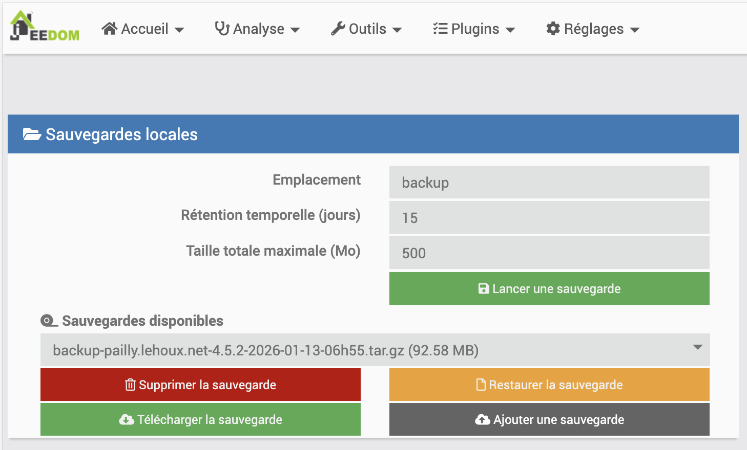 Non tu n’a pas nécessairement besoin, tous les backups que jeedom fait sont stockés dans ce dossier que j’ai indiqué plus haut.