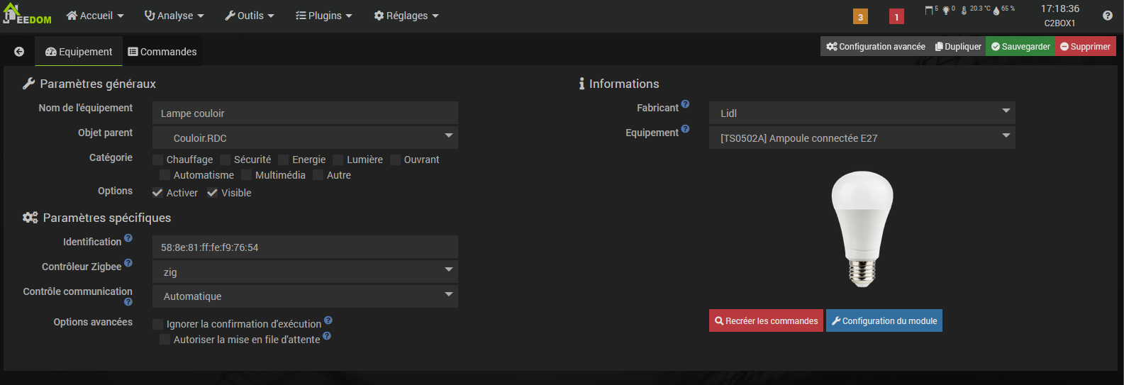 je galère pour le retour d’état d’une ampoule LIDL avec le plugin Zigbee