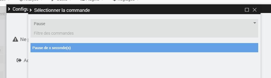 dans onglet commande puis option je sélectionne « pause » mais ça écrit sleep ??