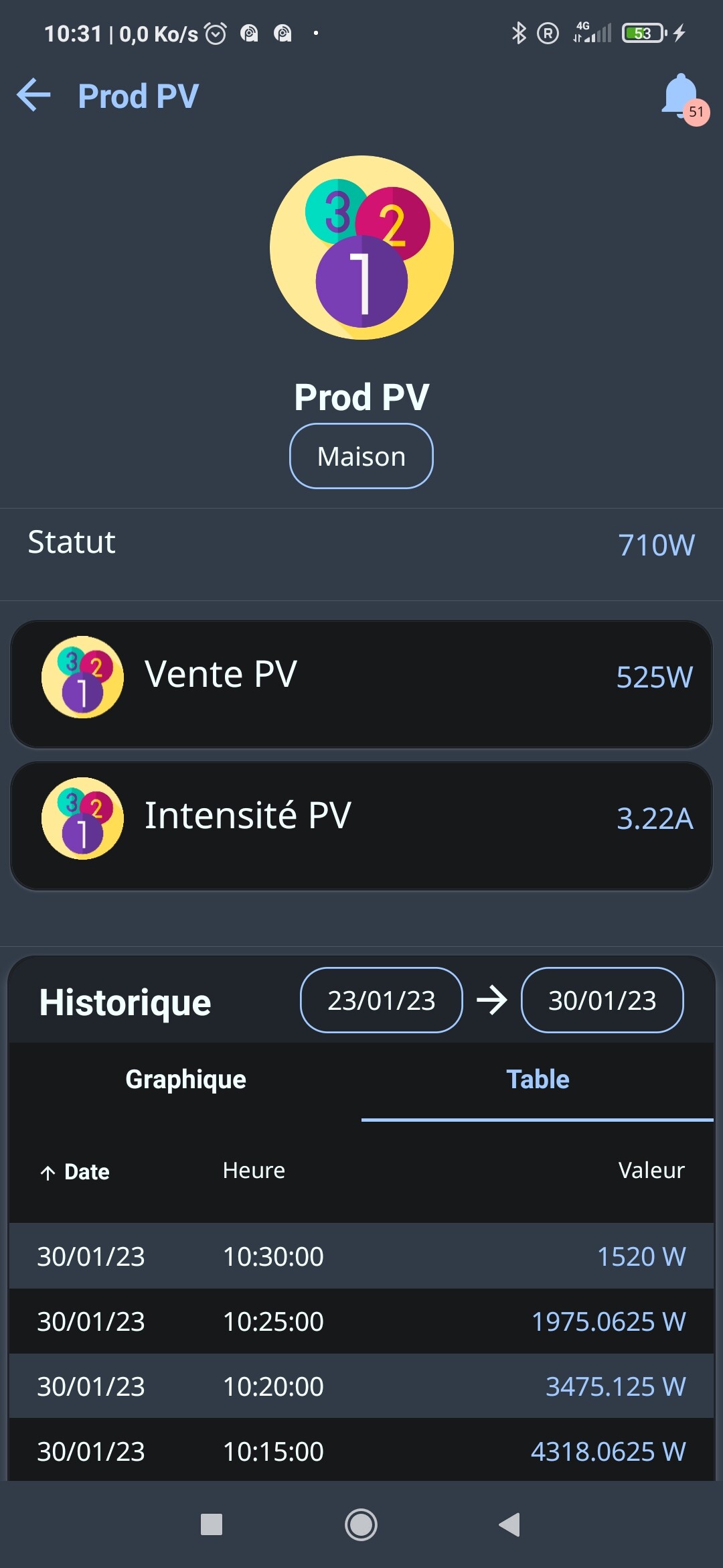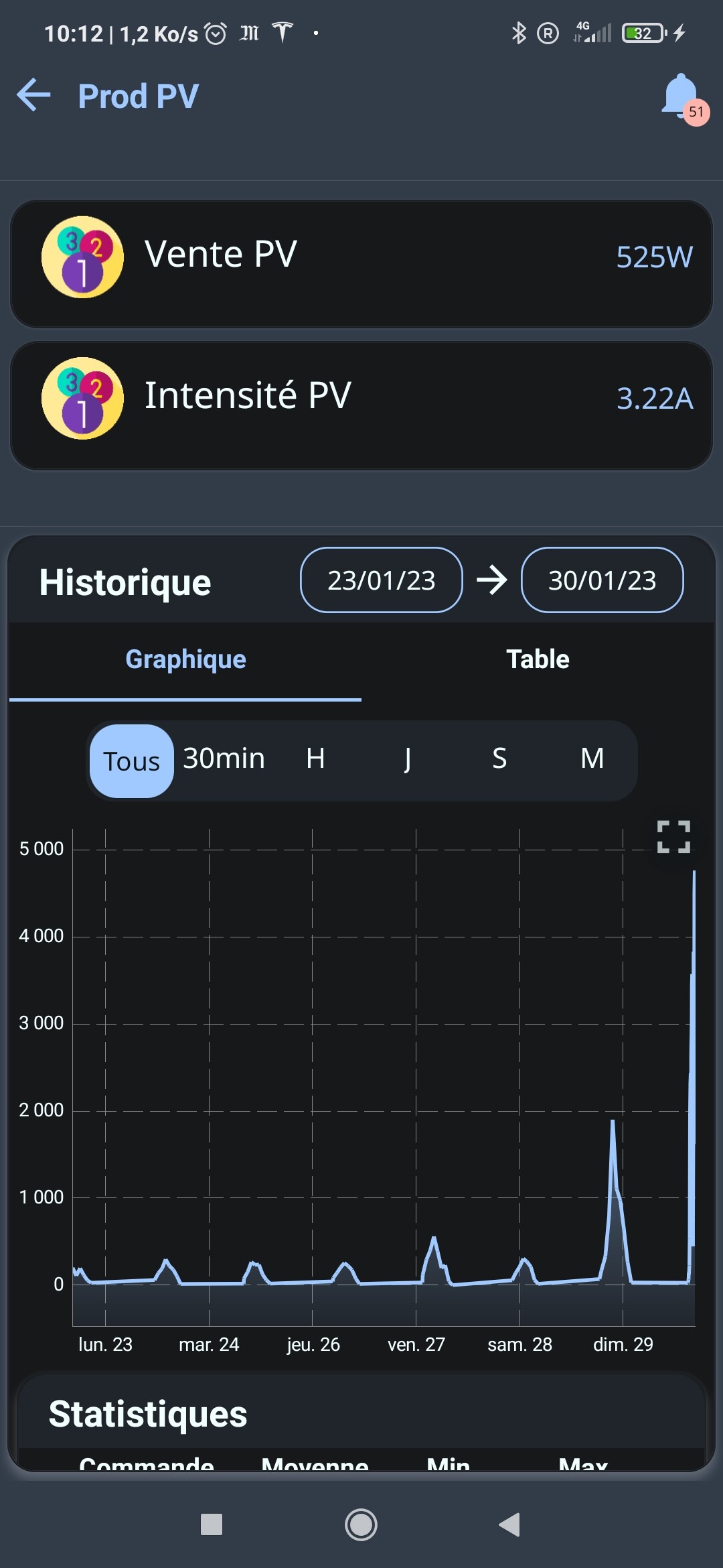 Autre point, si je regarde la consommation ou production de ma maison, la valeur ne semble pas être en direct.