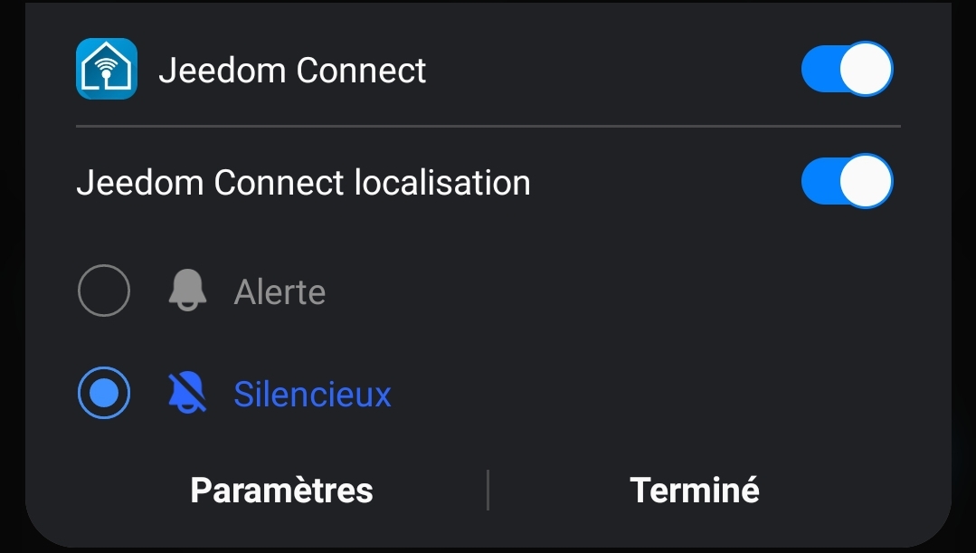 pour ma part, j’ai masquer les notifs « service Jeedom Connect » et « Jeedom connect localisation » … et aucun souci sur le long terme (je n’ai pas du tout les mêmes écrans que @tomitomas. Je pense que ca doit dépendre de la surcouche constructeur et de la version android).