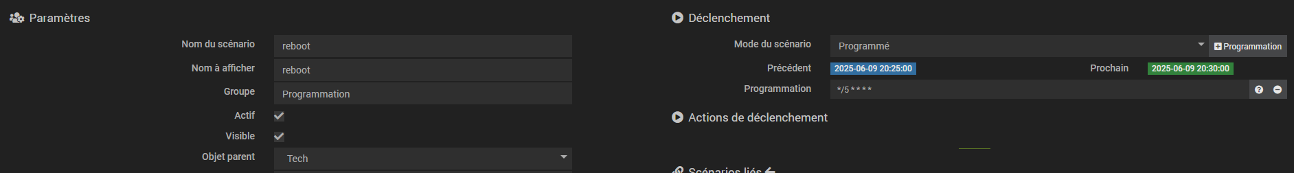 $scenario->setLog(">>> Redémarrage Jeedom déclenché par le scénario !");