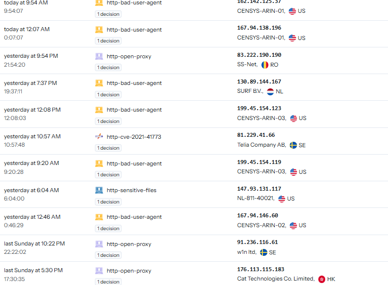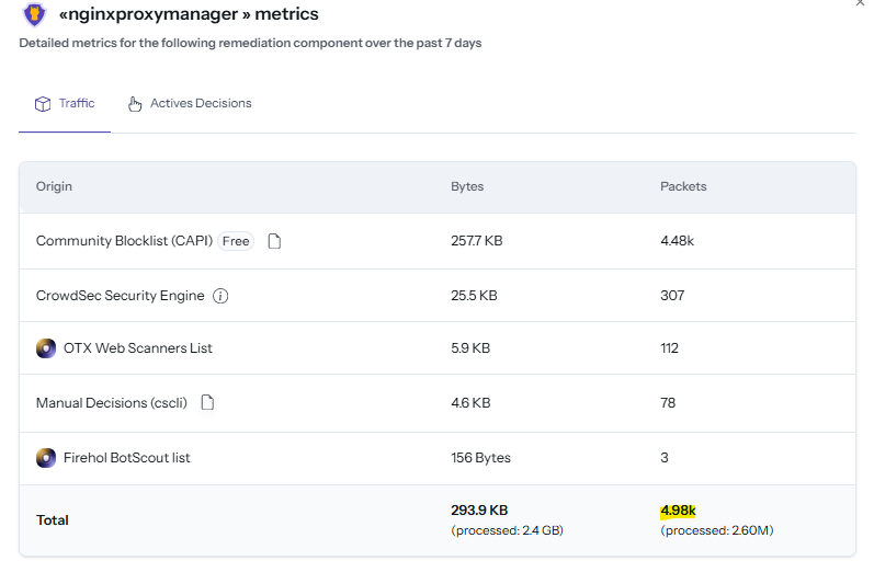 Toutes mes VMs hébergées et qui expose un service sur l’extérieur sont protégées par crowdsec. Et effectivement, c’est assez flippant le nombre d’attaque auquel on est exposés chaque jour…