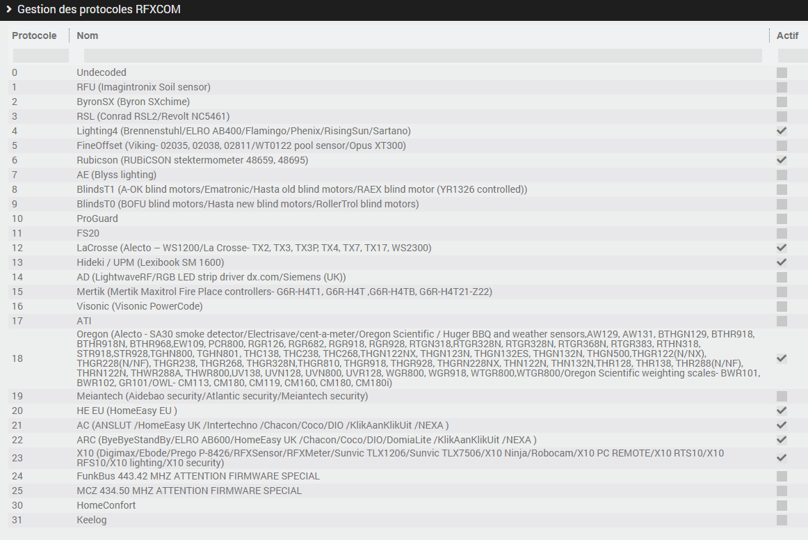 Je viens d’ajouter un boitier RFXCom RFXtrx433XL patché « RFXtrx433XL_ProXL2_1051 » (ps: je l’utilisais précédemment avec Domoticz sans soucis).
