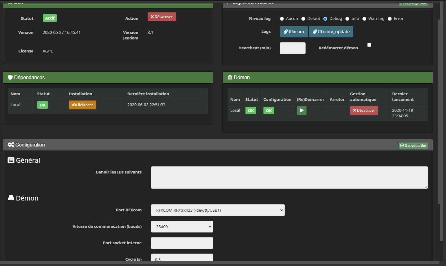 Tous les plugins sont à jour (plugin RFXCOM du 27-05-2020)
