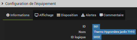 Exemple : XXX c’est l’ID 561 (Jeedom) et pas l’ID logique 0002 (RFX)