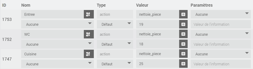 Et normalement sur le dashboard : Si tu appuie sur Entree → le virtuel passe la commande info nettoie_piece en valeur « 19 » → comme changement de valeur cela déclenche le scénario → exécution du scenario avec comme paramètre nettoie_piece = 19 → nettoyage pièce 19.