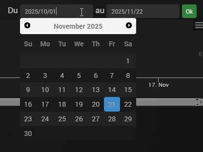 Si je veux changer la plage , genre 1er novembre 2025, j’obtiens cela: