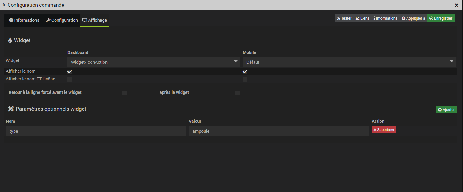 Il faudra repasser sur les commandes pour appliquer le nouveau widget et vérifier les paramètres optionnels c’est tout