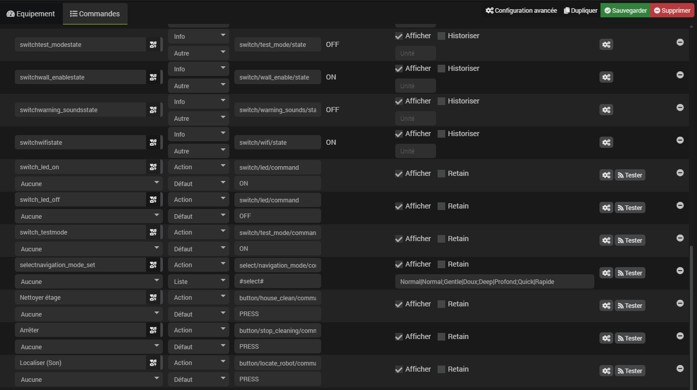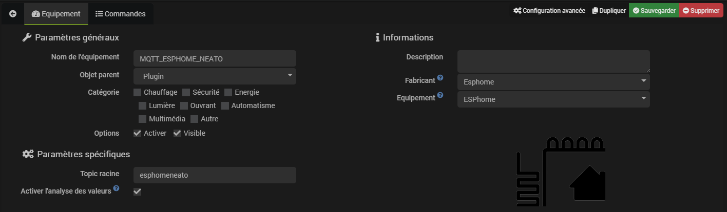 À la place, créer un nouvel objet MQTT dans Jeedom et le configurer ainsi :