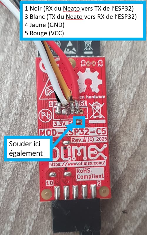 - ESP32 : MOD-ESP32-C5 - Open Source Hardware Board (très compact et parfait pour cet usage mais pas simple à souder. Sinon n’importe quel ESP32 assez compact doit faire l’affaire).