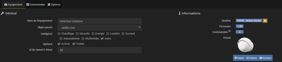 Voilà le détecteur extérieur avec ses commandes que j’ai rechargé pour tester si ça réglait le problème :